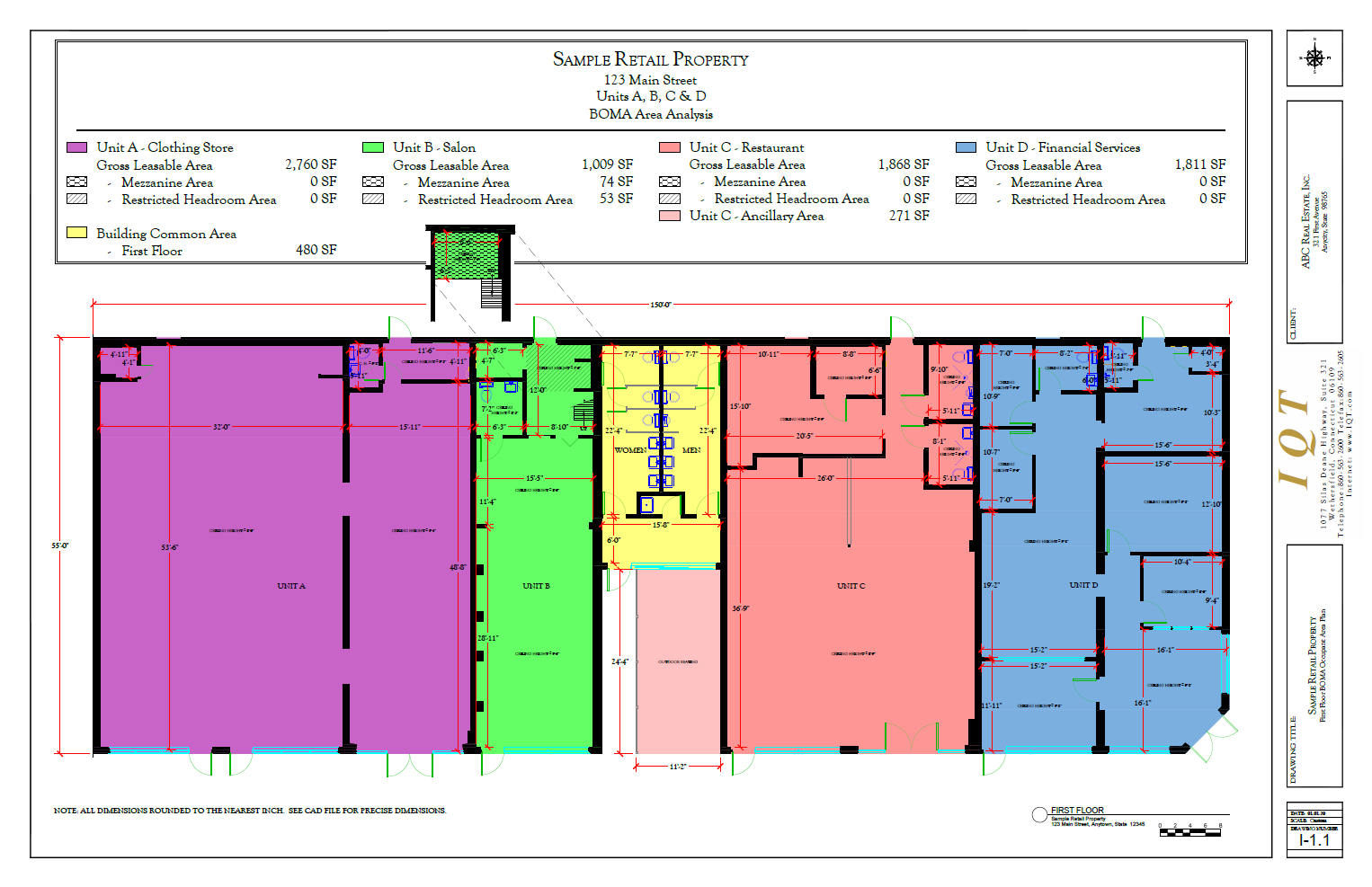 A byproduct of accurate building measurement is the ability to perform an Area Analysis of the property. As square footage is a key component in any real estate transaction, you will be assured that we can provide an unbiased account of the space which adheres to your desired industry standard. If you are a building owner that is looking to sell, lease or rent a property, and are looking to maximize value, or are a prospective buyer looking to verify a building’s rentable area as part of a due diligence process, then we can be an instrumental partner in this endeavor.