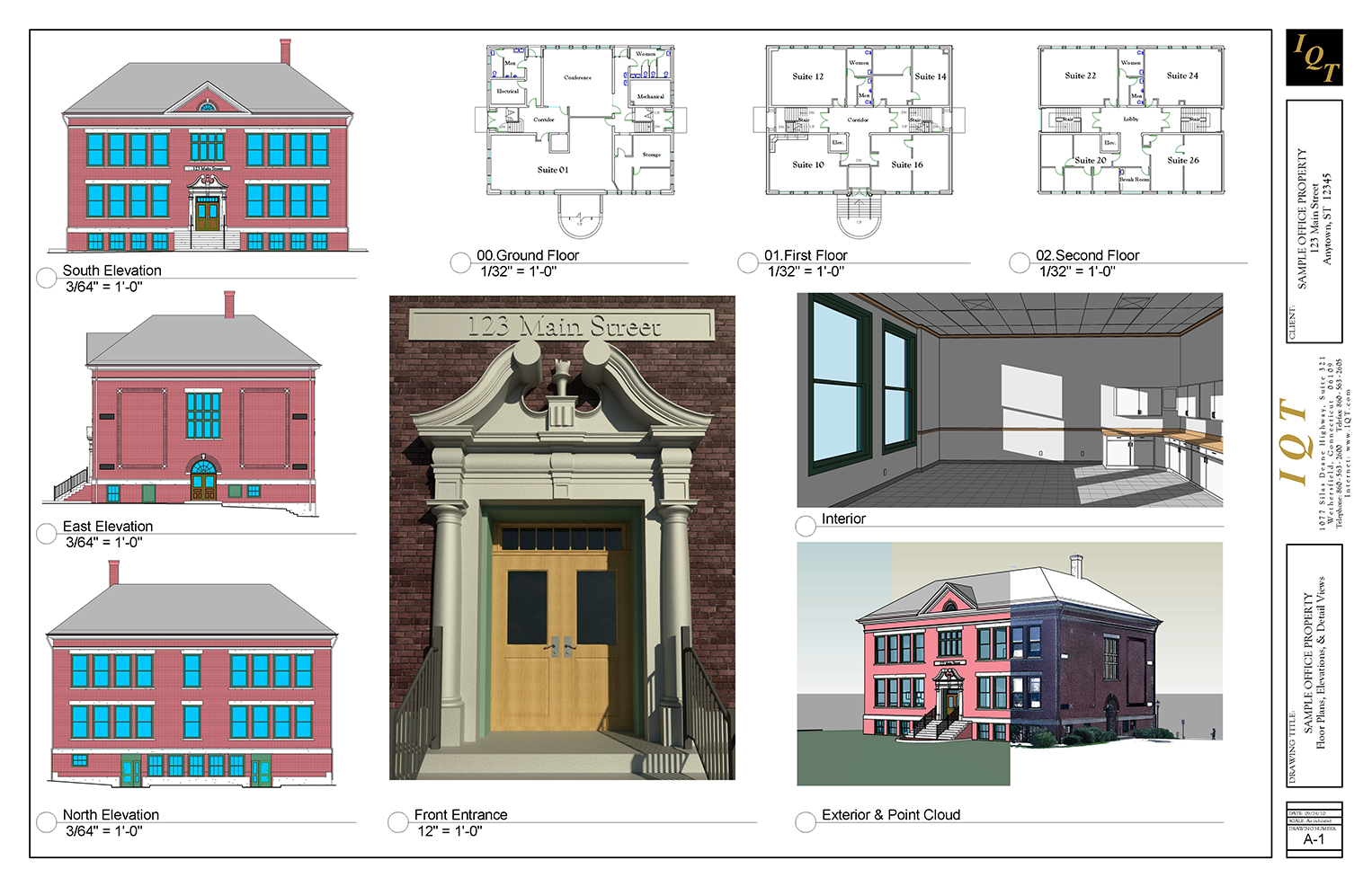 Our Architectural Floor, Exterior Elevation & Roof and Section Plans are created to your standards, and to the Level of Documentation appropriate for a given project. Floor Plans may be Enhanced with the depiction of any Mechanical, Electrical, Plumbing and Life Safety components. Plans are developed and delivered in the industry's most widely used applications and formats.